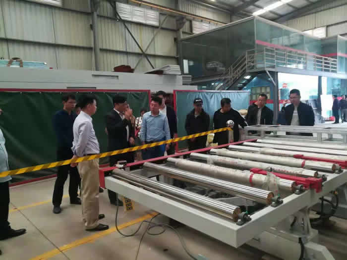 考察團隊走進園區(qū)的泉州富橋機械有限公司,劉總熱情地迎接客人參觀車間。公司主要生產(chǎn)自動翻板設(shè)備、高效自動補膠設(shè)備、自動補膠烘干設(shè)備、花崗石條板火燒機、修邊剪切、開槽等特殊機械產(chǎn)品。
